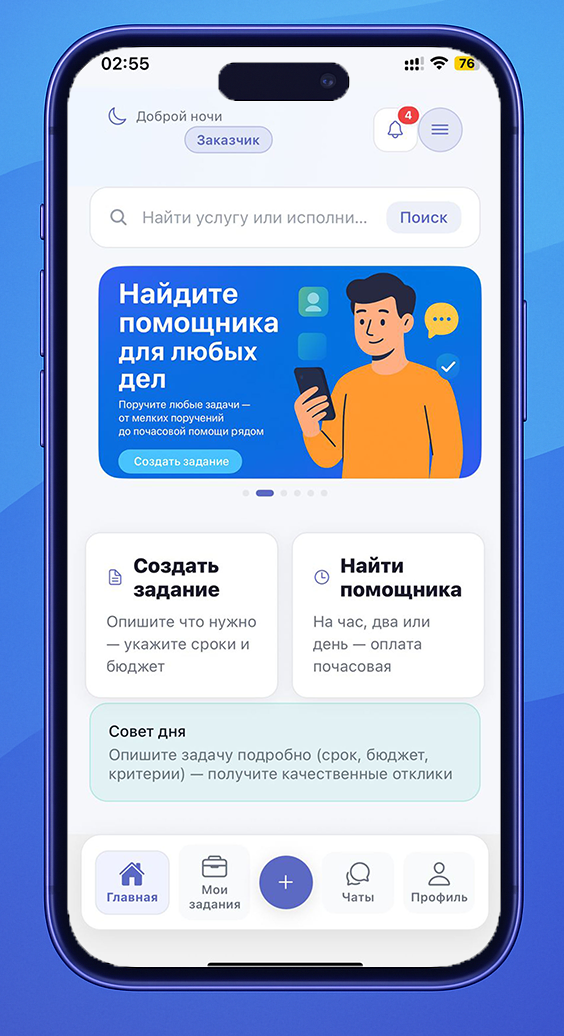 Создавайте задания или находите работу рядом. Безопасно, удобно, быстро.
